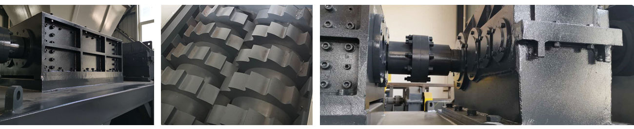 4、電機(jī)驅(qū)動(dòng)減速機(jī)與破碎主軸直連,效率高,故障少。