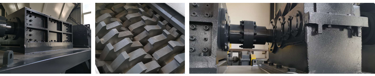 4、撕碎室由高強度鋼板焊接而成,并經過熱處理,使用壽命更長,強度更大。